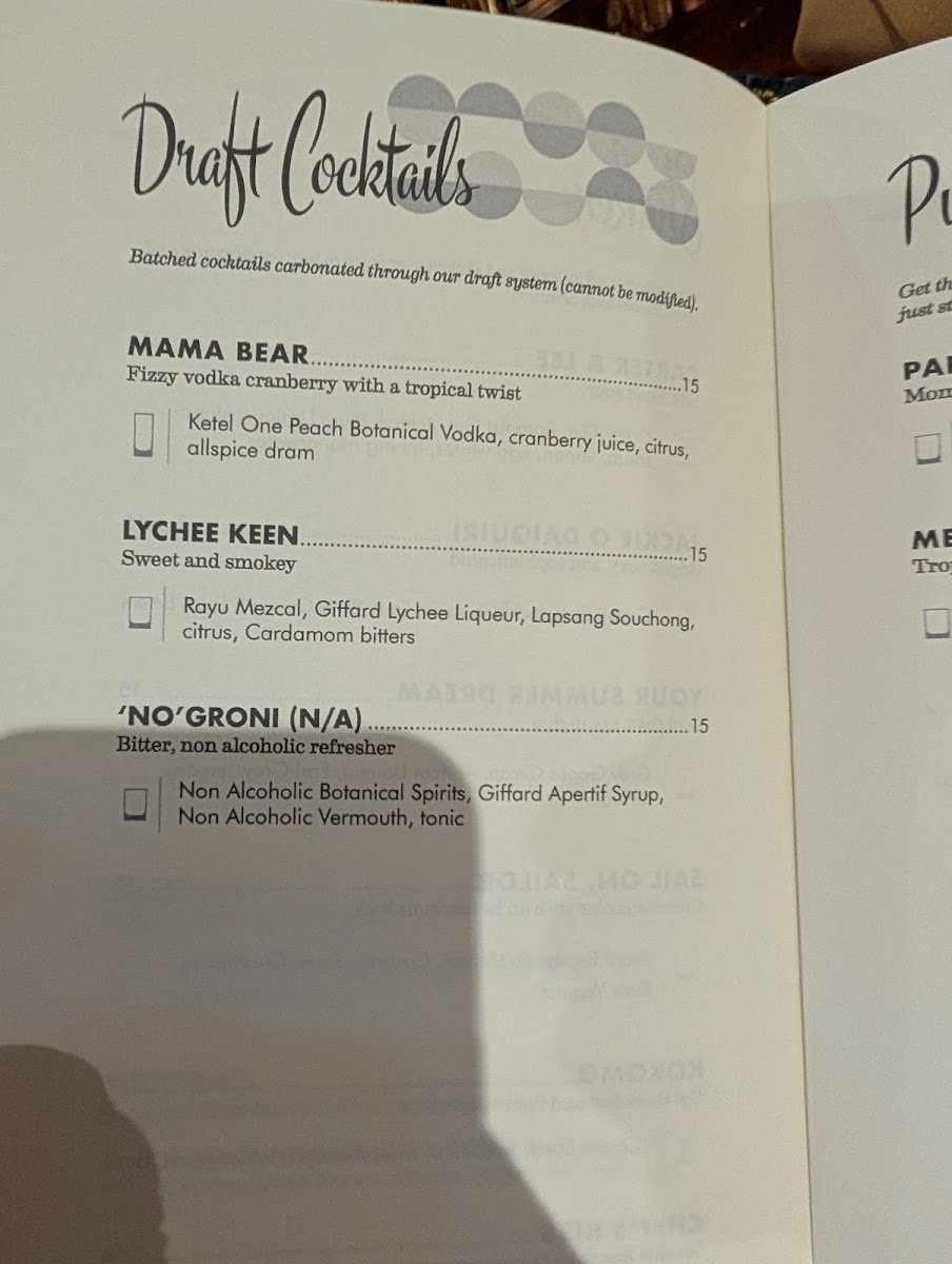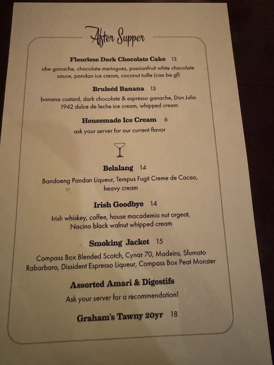 Beyond the food, the beverage offerings elevate the meal with artisan cocktails such as the Spirit Reviver Blanc and the Bardo Americano, alongside thoughtfully crafted non-alcoholic options like the vibrant ‘No’Groni.’ The rotating housemade ice cream and indulgent desserts like bruleed banana custard and apple cake provide a perfect closing note.