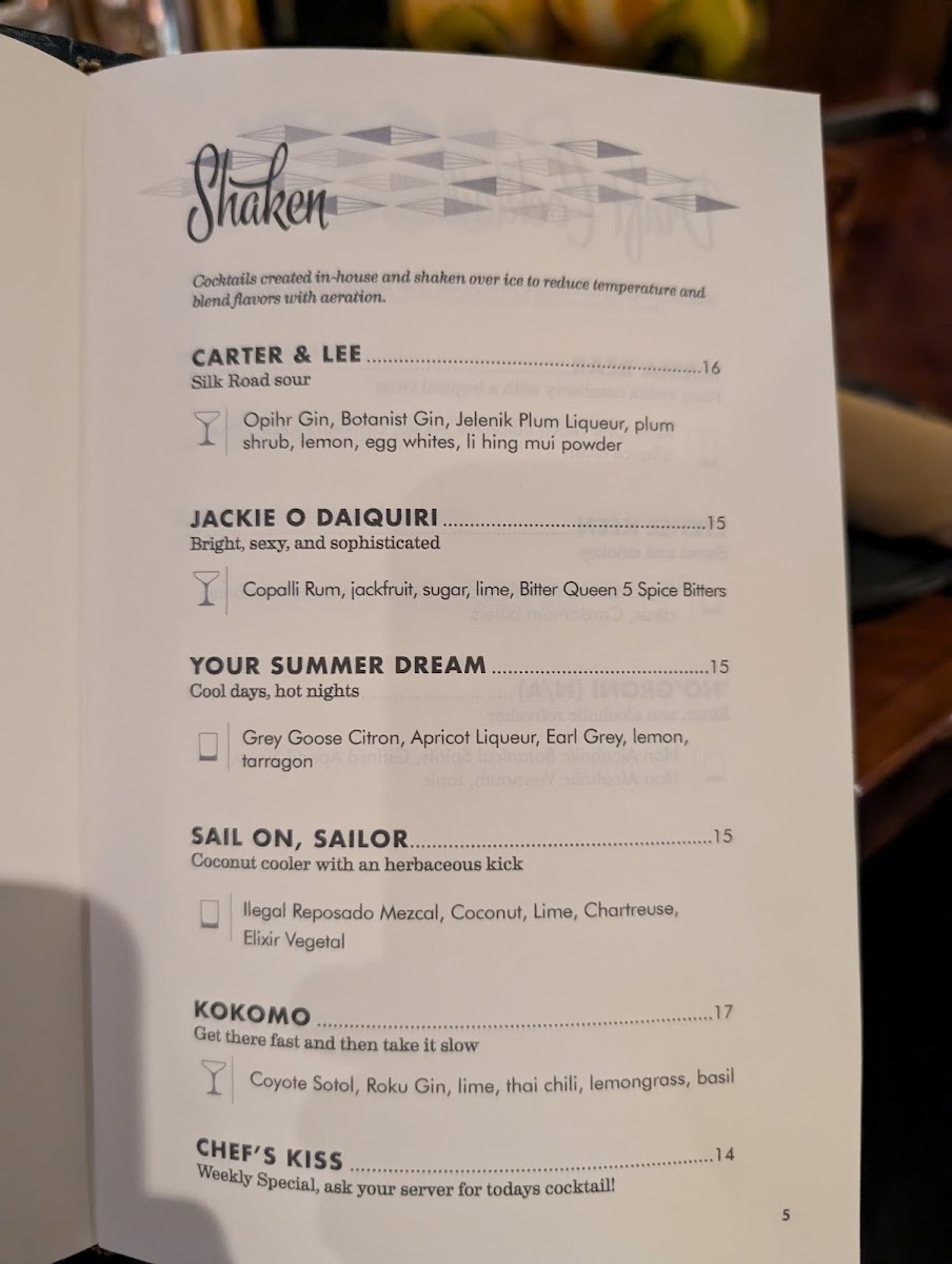 The atmosphere complements the menu beautifully, blending midcentury charm with a polished yet relaxed vibe. Attentive service and creative pairings make dining here a memorable treat, a true gem for those seeking quality, creativity, and comfort.